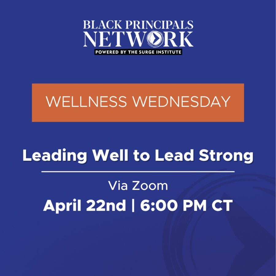 The Black Principals Network invites education leaders to a virtual Wellness Wednesday event on April 22 at 6 p.m. CT.